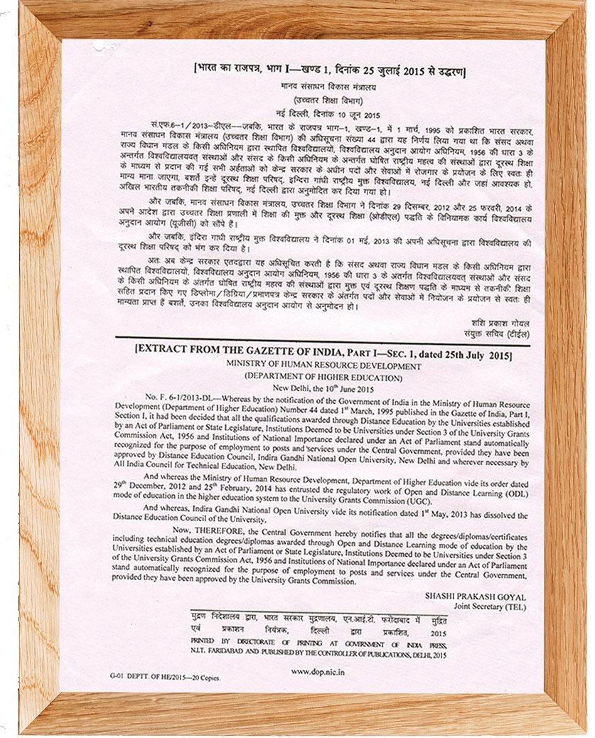 Central Government, as an Employer, had made its position clear in respect of academic qualifications; acquired through distance mode of education; for the purpose of employment under vide Gazette Notification No.44 dated March 1, 1995.